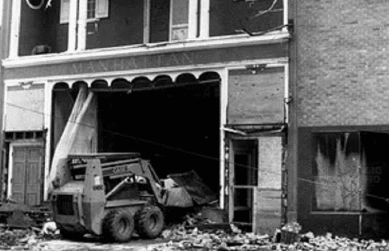 In January 1988, demolition crews began to tear down the Manhattan Restaurant.